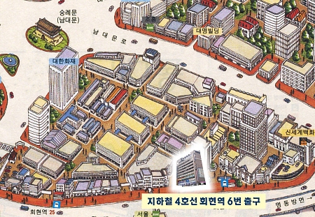 지하철 4호선 회현역 6번 출구에서 바로 보이는 건물입니다. 저희 본당에는 주차장이 없습니다. 대중 교통을 이용 해 주세요.
