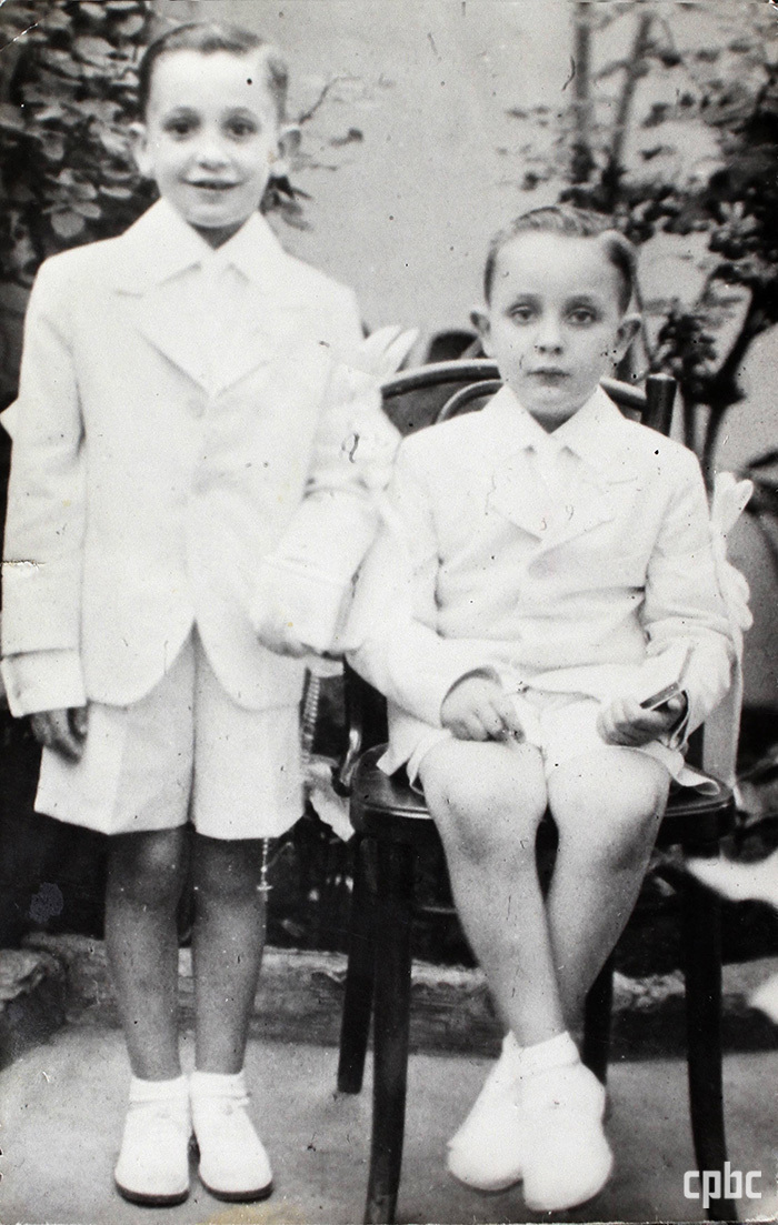 - 프란치스코 교황의 어린 시절인 1942년 가족 사진. 호르헤 마리오 베르골료(왼쪽)가 동생 오스카와 함께 첫 영성체를 한 뒤 촬영했다고 한다. OSV