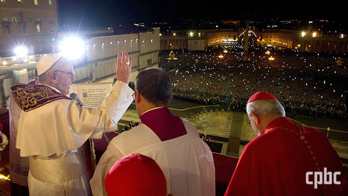 - 2013년 3월 13일 제266대 교황 즉위 이후 처음으로 로마 베드로 대성전 발코니에 모습을 드러낸 프란치스코 교황. OSV